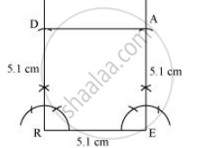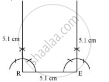 2) Draw a line segment RE of 5.1 cm and an angle of 90º at point R and E.