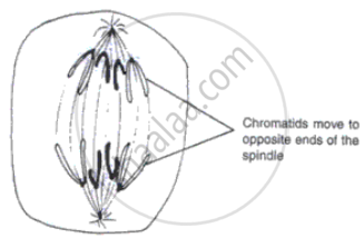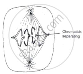 Draw a well-labelled diagram to show the anaphase stage of mitosis in plant cells having four chromosomes.