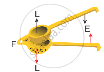 The diagram below shows a lemon crusher indicating the direction of effort (E) and load (L).