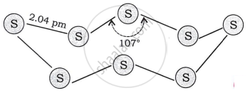 Draw structure of sulphur molecule (Rhombic sulphur). Mention bond angle and bond length.