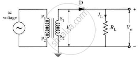 Electric circuit: The alternating voltage to be rectified is applied across the primary coil (P1P2) of a transformer. The secondary coil (S1S2) of the transformer is connected in series with the junction diode and a load resistance RL, as shown in the following figure. The alternating voltage across the secondary coil is the ac input voltage Vi. The de voltage across the load resistance is called the output voltage V0.