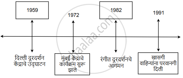 दूरदर्शनशी संबंधित पुढील कालरेषा पूर्ण करा: दिल्ली दूरदर्शन केंद्राचे उद्घाटन रंगीत दूरदर्शनचे आगमन - History and Political Science [इतिहास व राज्यशास्त्र]