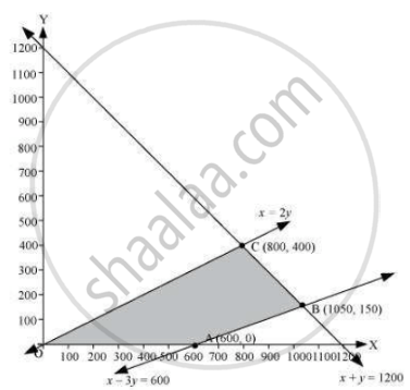कोने बिंदु ए (600, 0) बी (1050, 150), और सी (800, 400) हैं। इन कोने बिंदुओं पर z का मान इस प्रकार है।
