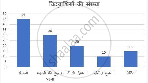 1 इकाई लंबाई = 5 विद्यार्थी का पैमाना लेकर, एक दंड आलेख बनाया। खेलने के अतिरिक्त कहानीकी पुस्तक पढ़ना अधिकांश विद्यार्थियों द्वारा पसंद किया जाता है।