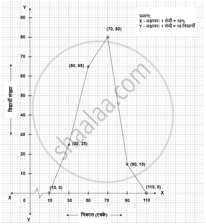 निकाल (टक्के) वर्गमध्य विद्यार्थी संख्या बिंदूंचे निर्देशक