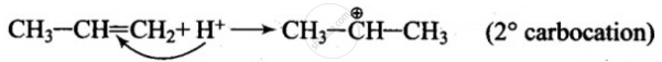 \[\ce{H3C - HC = CH2 + H+ ->?}\]