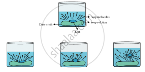 The oily spot present on clothes is organic in nature and insoluble in water. Therefore, it cannot be removed by only washing with water. When soap is dissolved in water, its hydrophobic ends attach themselves to the oily spot and remove it from the cloth. Then, the molecules of soap arrange themselves in the form of micelle and trap the dirt at the centre of the cluster. These micelles remain suspended in the water. Hence, the oily spots are easily rinsed away by water.