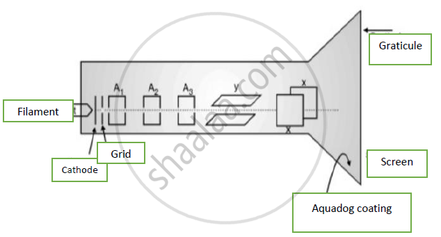 2. It consist of heater, a cathode, a grid, a pre-accelerating anode, a focussing anode and an accelerating anode.