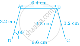 Construct a trapezium ABCD where AB || CD, AD = BC = 3.2 cm, AB = 6.4 cm and CD = 9.6 cm. Measure ∠B and ∠A.