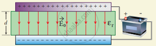 The battery is then disconnected from the capacitor and the dielectric is inserted between the plates. The introduction of dielectric between the plates will decrease the electric field. Experimentally it is found that the modified electric field is given by