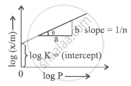 A graph is plotted between log (x/m) and log P according to the equation `x/"m" - "kP"^(1/"n")`