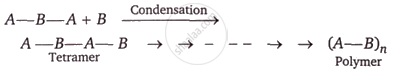 \[\ce{\underset{Monomers}{A + B} ->[Condensation] \underset{Dimer}{A - B}}\]