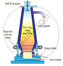 Smelting (in a Blast Furnace): The charge consisting of roasted ore, coke, and limestone in the ratio 8 : 4: 1 is smelted in a blast furnace by introducing it through the cup and cone arrangement at the top. There are three important regions in the furnace.