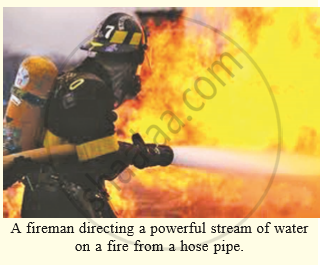 When a fireman holds a hose, which is ejecting large amounts of water at a high velocity, then a reaction force is exerted on him by the ejecting water in the backward direction. This is because of Newton’s third law of motion. As a result of the backward force, the stability of the fireman decreases. Hence, it is difficult for him to remain stable while holding the hose.