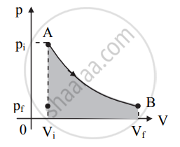 c. The system thus, reaches its final state B with co-ordinates (Vf, pf). Work done in this process is represented by the shaded area under the curve in figure (a). - Consider the system changes its state from A to B via path 3 as shown in figure (b).