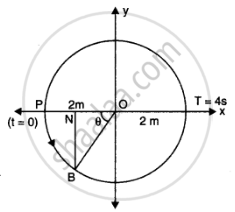 At time t = 0, OP makes an angle π with the x-axis, in the anticlockwise direction. Hence, phase angle, Φ = + π
