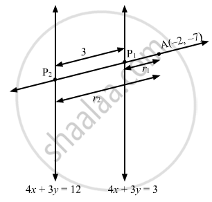 Let the required line intersect the lines 4x + 3y = 3 and 4x + 3y = 12 at P1 and P2.