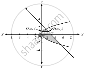 \[\text{ Consider a horizantal strip of length }\left| x_2 - x_1 \right|\text{ and width }dy\text{ where }P\left( x_2 , y \right)\text{ lies on straight line and Q}\left( x_1 , y \right)\text{ lies on the parabola }. \]