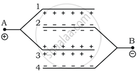 When A and B are connected to the positive and negative plates of the battery, respectively, the charges will appear on them as: