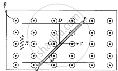 The induced electric field E along the dotted line CD (Perpendicular to both `vecv` and `vecB` along `vecv xx vecB`) = `vB`