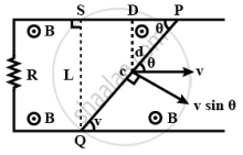 Find the current in the wire for the configuration shown in figure. Wire PQ has negligible resistance. B, the magnetic field is coming out of the paper. θ is a fixed angle made by PQ travelling smoothly over two conducting parallel wires separated by a distance d.