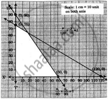 `"x"/60 + "y"/90 ≤ 1`, `"x"/120 + "y"/75 ≤ 1`, y ≥ 0, x ≥ 0