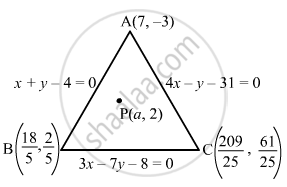 Find the Values of the Parameter a So that the Point (A, 2) is an Interior Point of the Triangle Formed by the Lines X + Y − 4 = 0, 3x − 7y − 8 = 0 and 4x − Y − 31 = 0. - Mathematics