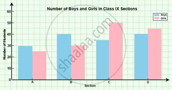 Following table shows the number of boys and girls in four sections of class IX in a school. Represent them by a bar graph.