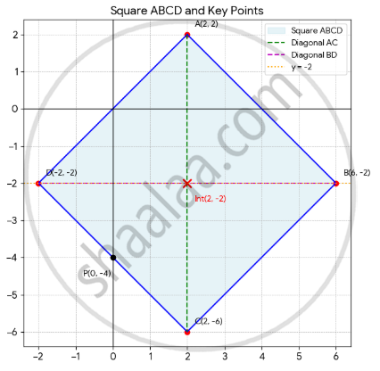 The coordinates are D(–2, –2), C(2, –6), P(0, –4) and the intersection of diagonals is (2, –2) the figure ABCD is a square.
