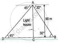 From a lighthouse, the angles of depression of two ships on opposite sides of the lighthouse were observed to be 30° and 45°. If the height of the lighthouse is 90 metres and the line joining the two ships passes through the foot of the lighthouse, find the distance between the two ships, correct to two decimal places.