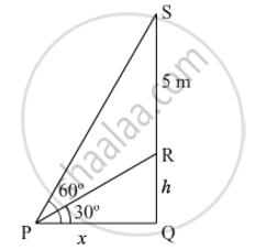 From a point P on the ground the angle of elevation of the top of a tower is 30° and that of the top of a flag staff fixed on the top of the tower, is 60°. If the length of the flag staff is 5 m, find the height of the tower.