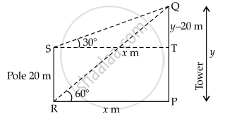 In ΔQTS, tan 30° = `(QT)/(ST) = (y - 20)/x`