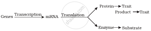 The genes present in an organism show a particular trait by way of forming certain product. This is facilitated by the process of transcription and translation (according to central dogma of genetics)