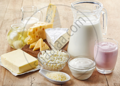 Milk of various types (including whole milk, skim milk, buttermilk), yoghurt, cheese (e.g. Swiss cheese, cheddar cheese, cottage cheese), and ice cream are dairy products.