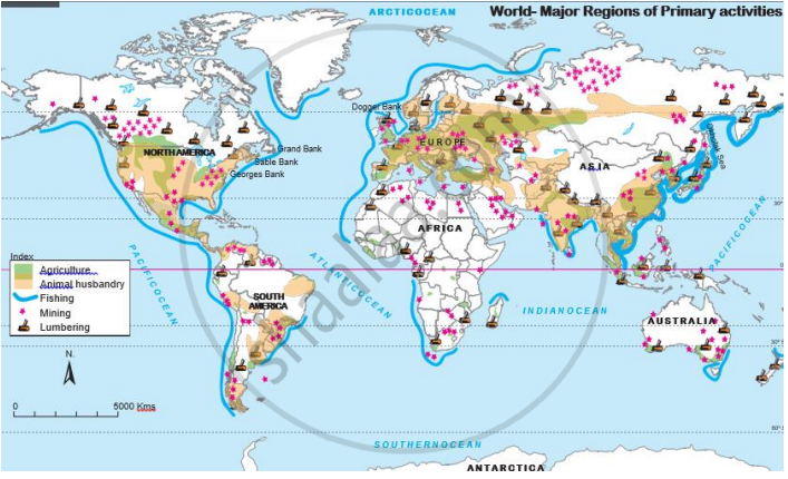 - Which primary economic activities are found to the south of Tropic of Capricorn?