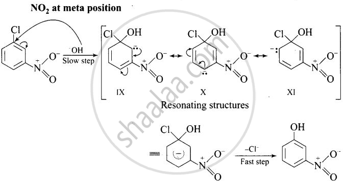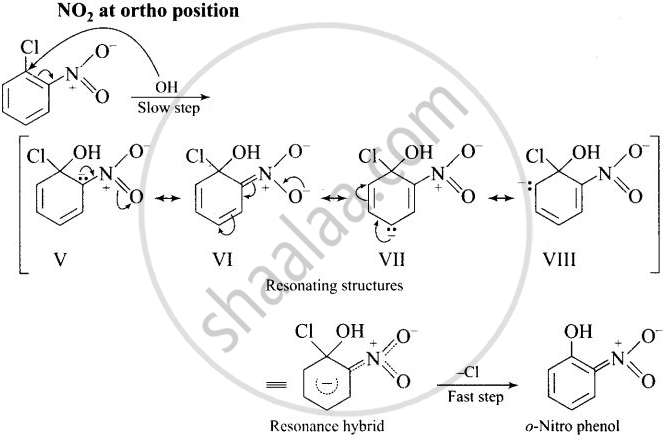 The reactivity of aryl halides can be increased by the presence of an electron withdrawing group (-NO2) at ortho and para positions. No effect is observed by the presence of electron withdrawing group at weta-position Mechanism of the reaction is as depicted with OH ion: