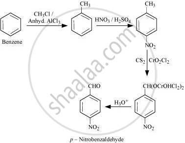 An organic compound with molecular formula \[\ce{C7H7NO2}\] exists in three isomeric forms, the isomer ‘A’ has the highest melting point of the three. ‘A’ on reduction gives compound ‘B’ with molecular formula \[\ce{C7H9N}\]. ‘B’ on treatment with \[\ce{NaNO2/HCl}\] at 0-5° C to form compound ‘C’. On treating C with \[\ce{H3PO2}\], it gets converted to D with formula \[\ce{C7H8}\], which on further reaction with \[\ce{CrO2Cl2}\] followed by hydrolysis forms ‘E’ \[\ce{C7H6O}\]. Write the structure of compounds A to E. Write the chemical equations involved.