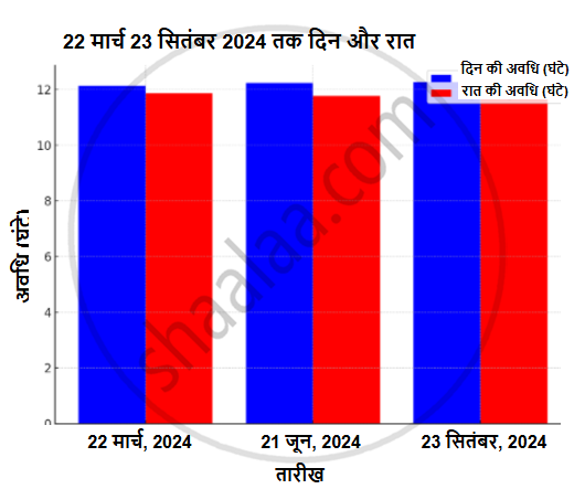 ICT का उपयोग:  अंतरजाल (इंटरनेट) के आधार पर संकेत स्थलों अथवा दिनदर्शिका का उपयोग कर २२ मार्च से २३ सितंबर की कालावधि में प्रत्येक महीने में दिनमान का अंकन निश्चित दिनांकों पर कर लो। - Geography [भूगोल]
