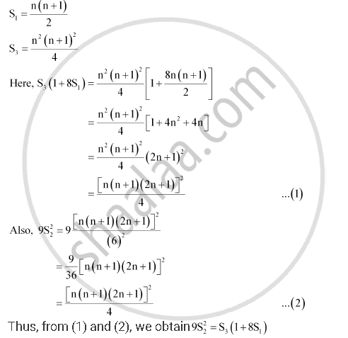 If S1, S2, S3 are the sum of first n natural numbers, their squares and their cubes, respectively, show that `9S_2^2 = S_3(1 + 8S_1)`