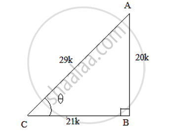 Now. Sin 𝜃 = `(AB)/(AC) = 20/29 and cos θ =(BC)/(AC)=21/29`