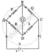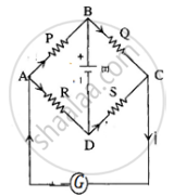 The galvanometer is linked between B and D in the circuit (1) depicted, while the battery is connected between A and C. `"P"/"R" = "Q"/"S"` in the bridge balanced condition.