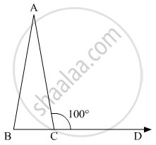 In a ΔABC, if AB = AC and BC is produced to D such that ∠ACD = 100°, then ∠A =