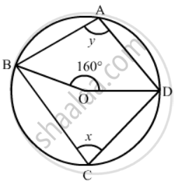 In the given figure, O is the centre of the circle. If ∠BOD = 160°, find the values of x and y.