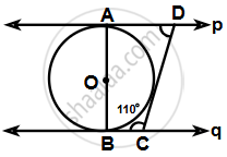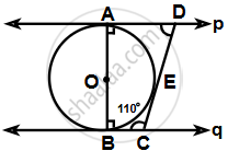 In the adjoining figure, AB is the diameter of the circle with centre O. Two tangents p and g are drawn to the circle at points A and B respectively. Prove that p || q. Further, a line CD touches the circle at E and ∠BCD = 110°. Find the measure of ∠ADC.