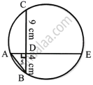 In the figure, chords AE and BC intersect each other at point D. If ∠CDE = 90°, AB = 5 cm, BD = 4 cm and CD = 9 cm; find DE.