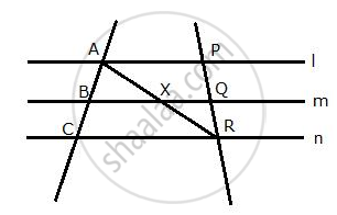 In the following diagram, lines l, m and n are parallel to each other. Two transversals p and q intersect the parallel lines at points A, B, C and P, Q, R as shown.
