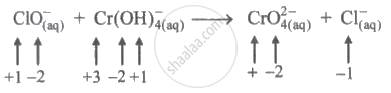\[\ce{ClO^-_{( aq)} + Cr(OH)^-_{4(aq)} -> CrO^{2-}_{4(aq)} + Cl^-_{( aq)} (basic)}\]
