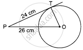 In the given figure, point P is 26 cm away from the centre O of a circle and the length PT of the tangent drawn from P to the circle is 24 cm. Then the radius of the circle is 10 cm.