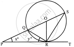 In the given figure, PT touches the circle with centre O at point R. Diameter SQ is produced to meet the tangent TR at P. Given ∠SPR = x° and ∠QRP = y°;