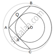 In the given figure, there are two concentric circles with centre O. If ARC and AQB are tangents to the smaller circle from the point A lying on the larger circle, find the length of AC, if AQ = 5 cm.